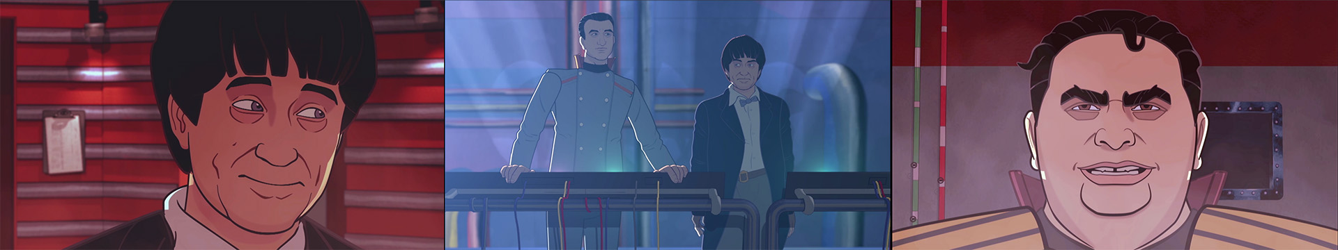 Due to a significant gap in the BBC archives there are currently 97 lost episodes of Doctor Who. Original scripts and telesnaps (photographs taken of the TV as the show aired) exist, along with a few clips but most of the original footage is lost forever. Fortunately, as the show was being broadcast live avid fans at the time recorded the audio of these episodes through their televisions. Paul Hembury, Executive Producer at BBC Studios, appointed Director/Producer Charles Norton to lead a new production, enlisting the pre-production team of character designer Martin Geraghty, storyboard artist Adrian Salmon and CGI animator/ compositor Rob Ritchie. After creating an initial animation test, Sun & Moon were commissioned by BBC Studios to help re-imagine The Macra Terror, a missing four-episode serial of Doctor Who from 1967 starring Patrick Troughton as the Second Doctor.