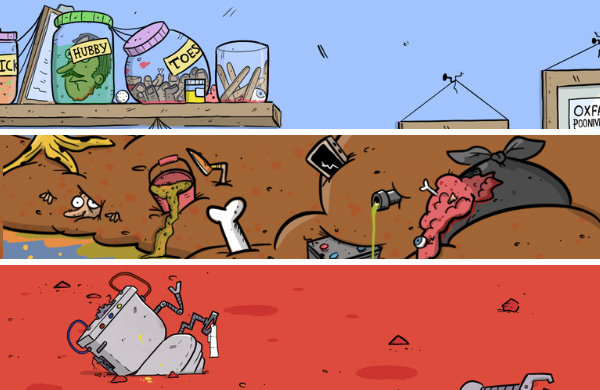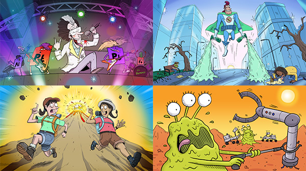 The Horrible Science books have jokes practically bursting out of every page, so we made sure the frames of our animations were no different. The backgrounds provided the perfect canvas to pack in extra laughs and give repeat viewers more to discover as they watched along.