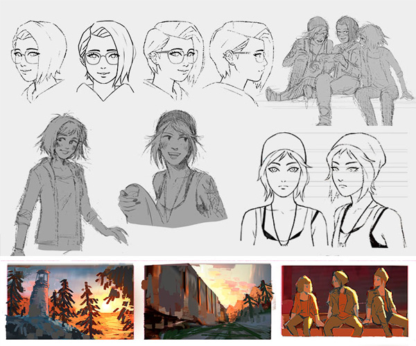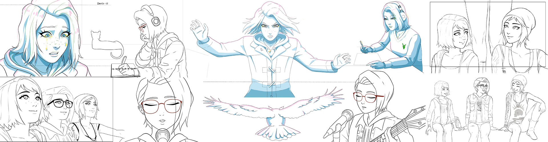 Our first step is always to capture the iconic characters of the series. It is always a shame that this early exploratory stage doesn’t make it to the screen but that’s where the internet comes in handy! And when it comes to backgrounds, we start by creating a colour script to capture the tone of the animation. Life is Strange is known for it's use of the golden hour so a warm palette, offset by a cool foreground gives us the summer’s evening feel we're aiming for.