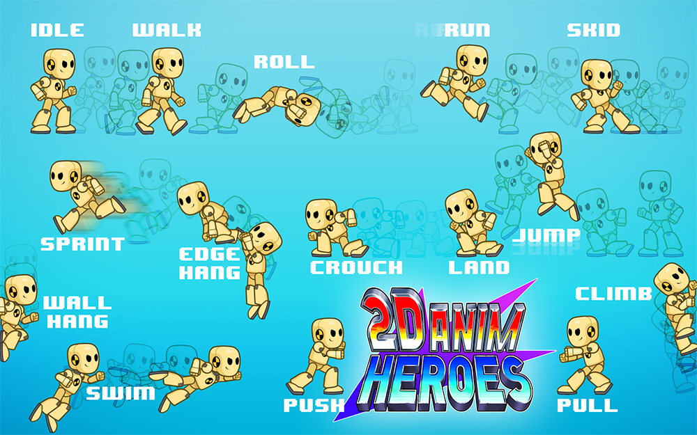 Here at Sun & Moon we created a video game animation pack called 2D Anim Heroes. Once we had made all the video game animations for the pack we started to build a small demo to show off our character. We built a simple control set up and got him running around and jumping! Exciting!! But something felt amiss… there was something not quite right. We found that Unity (the game engine) was smoothly blending one animation into another. It wasn’t until we turned this off and BOOM! We had video game animation!! In a video game the user’s input needs to happen instantly for the player to feel in control of their character. Otherwise the controls can feel sluggish and unresponsive. This translates into the style of the animation and when our character was popping straight from one animation into another it had that nostalgic arcade-y feel that gives us the warm fuzzies. For the final demo of the product we ended up putting the blending feature back in to some of the transitions but we set it to 0.1 seconds. We felt this was a good balance between polished, smooth animation while retaining the character’s responsiveness.